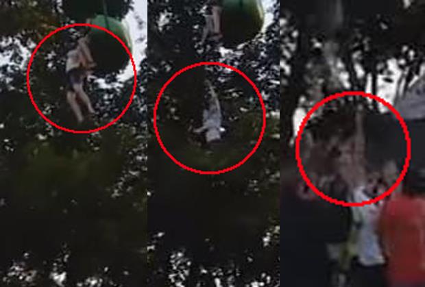 Neimenovana devojčica vozila se sa mlađim bratom, koji je plakao i dozivao pomoć pošto je ona nekako skliznula iz korpe i ostala da visi držeći se za korpu.