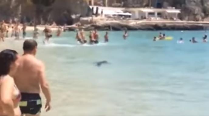 Plaža u popularnom turističkom letovalištu na Majorki nakratko je bila zatvorena u nedelju pošto je morski pas uneo totalni haos među kupače koji su panično počeli da beže iz vode.
