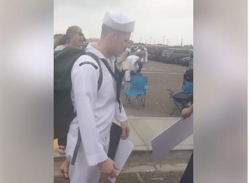 Srećne vesti američki mornar saznao je tako 23. junaa kada je njegov brod pristao u luku u San Dijegu. Ovaj doček je snimljen i objavljen na Fejsbuku.