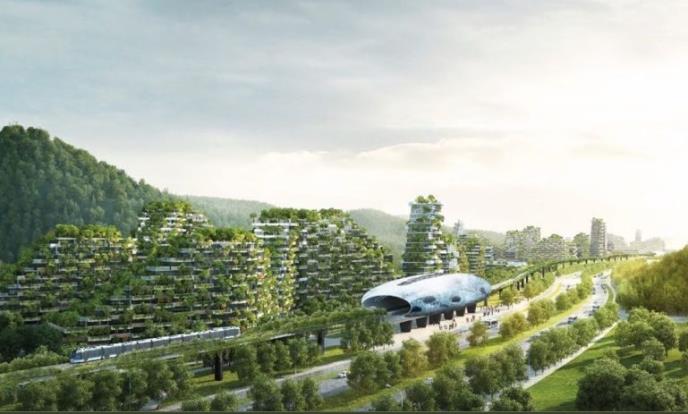 Grad je dizajnirao italijanski arhitekta Stefano Boeri, čija su ideja bile i dve vertikalne kule sa baštama u Nandžingu, a gradi se u Ljudžou u pokrajini Guangsi.
