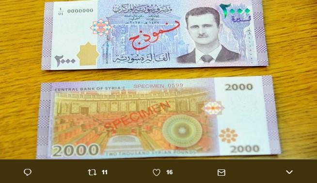Novčanica od 2.000 sirijskih lira sa likom predsednika Sirije Bašara al-Asada od danas će se naći u opticaju u toj zemlji, saopštila je Centralna banka Sirije.