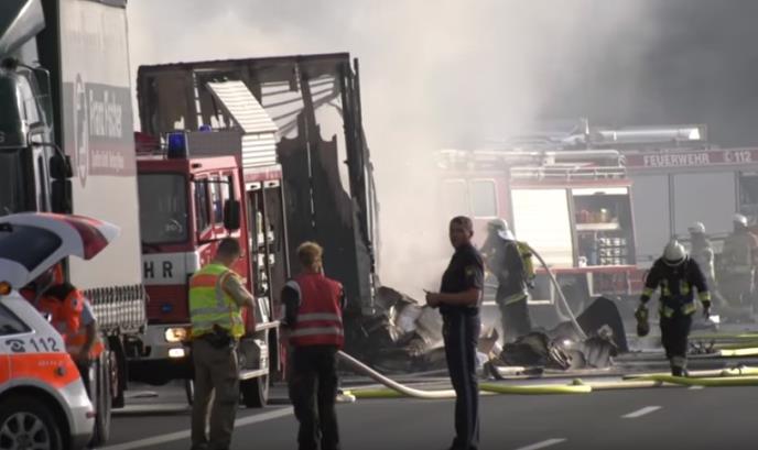 (VIDEO) STRAVIČNA SAOBRAĆAJNA NESREĆA U NEMAČKOJ: 18 putnika autobusa živo izgorelo!