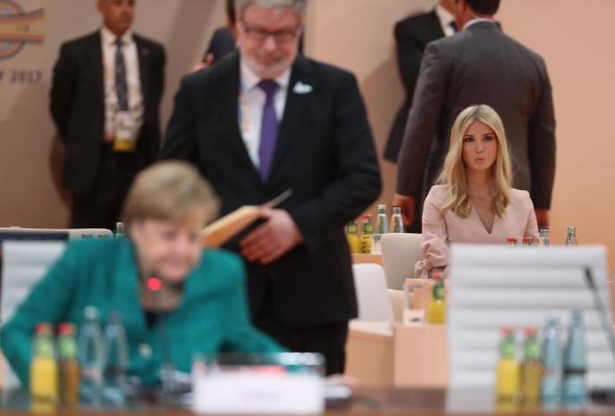 Tako je Ivanka sedela za stolom koji je predviđen za čelnike zemalja G20, a ona se našla između britanske premijerke Tereze Mej i kineskog predsednika Sija Đinpinga.