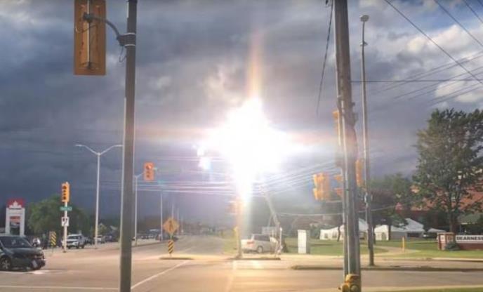 Jedan prolaznik snimio je na ulici, u Londonu u Kanadi, neuobičajnu "električnu vatru", koja je izgledala kao efekat iz naučnofantastičnih filmova.
