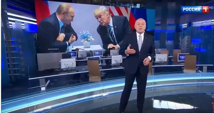 Zatim se vratio na Hamburg. "Prvo, [ovde] je važna razlika između Tramp-a na TV-u i stvarne osobe", rekao je Kiseljov, prelazeći na snimak Putina koji razgovara sa novinarima o sastanku u Hamburgu.