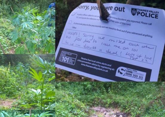 Policija Temza valija uništila je zasade marihuane u pošumljenoj oblasti kraj Oksforda i ostavila nepoznatom prestupniku neviđenu poruku.