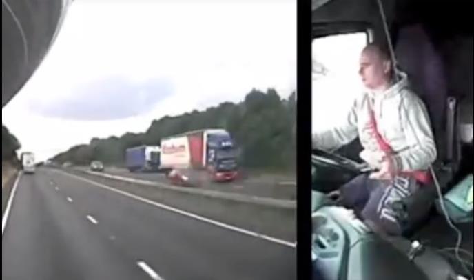 Naime, na jednom autoputu snimak pokazuje paralelno vozača u kabini i pogled ispred njegovog kamiona. U jednom trenutku on uzima mobilni i kreće da, kako se kasnije ispostavilo, menja muziku na svom telefonu.
