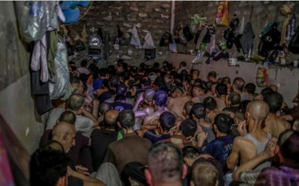 Izveštači agencije AP videli su više od 100 zatvorenika nabijenih u jednu mračnu prostoriju, kako rame uz rame sede na podu. Nema struje ni ventilacije, uprkos dnevnim temperaturama koje su i preko 45 stepeni Celzijusa.