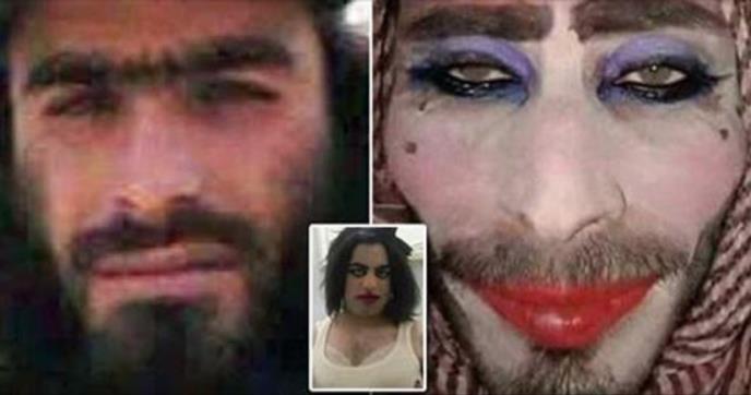 Na fotografijama koje je objavila iračka armija nakon njegovog hapšenja, čovek se može videti sa puderom, senkom i ružom za usne, čak i dodajući nekoliko mladeža
