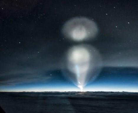 Samo nekoliko minuta kasnije, raketni izduvni gasovi počeli su da stvaraju zakrivljenu stazu, koja je pratila različite osvetljene tačke na tamnom nebu, a koje su menjale boju i oblik, verovatno u zavisnosti od ugla pod kojim ih je Sunce osvetljavalo.