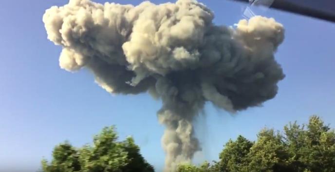 Video koji je snimio jedan od vozača u prolazu prikazuje veliku "pečurku" koja se nadvila nad skladištem.
