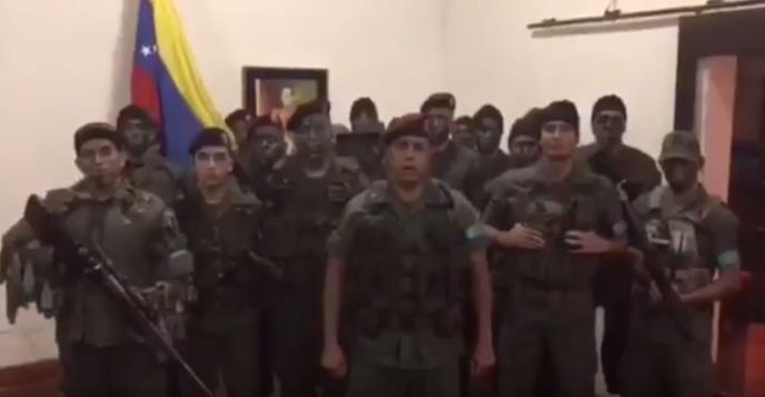 Snimak koji se pojavio na internetu pokazuje grupu muškaraca u vojnim uniformama koji tvrde da žele da zbace predsednika Venecuele Nikolasa Madura i tako povrate demokratiju.