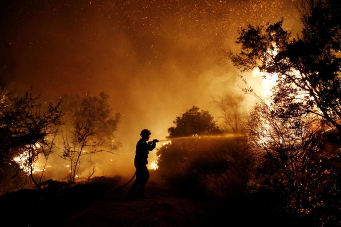 U gašenju požara, koji je izbio u Kalamosu, primorskom selu 45 kilometara od grčke prestonice, učestvuje više od 150 vatrogasaca sa 50 vozila i tri helikoptera za gašenje požara.
