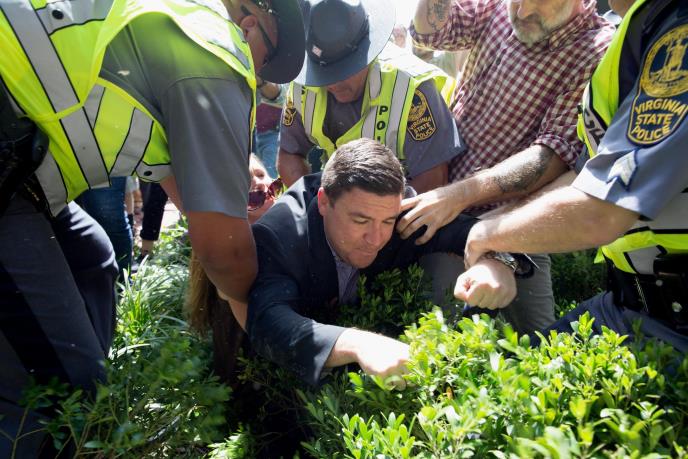Čovek koji je organizovao miting "Ujedinimo desnicu" u Šarlotsvilu u Virdžiniji zbog kog su izbili nasilni sukobi između belih prodesničarkih grupa i kontramitingaša pokušao je da održi konferenciju za medije, ali ga je publika izviždala i tako zaustavila u toj nameri.
