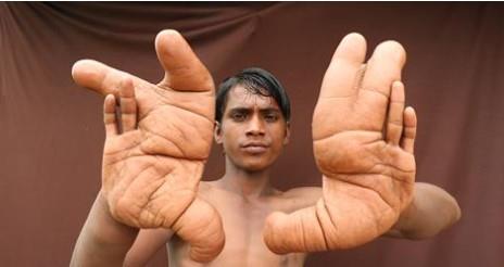 Indijskog dečaka Tarika (12) nazivaju 'ukleti đavo' zbog njegovih džinovskih šaka koje su duge 30 santimetara. Za njega su uobičajene aktivnosti poput jedenja, odevanja i vezivanja cipela ogroman problem, a ostala deca mu se rugaju i zadirkuju ga u školi.