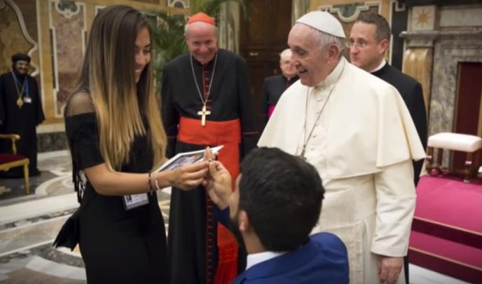 Dario Ramirez, političar iz Venecuele, sa svojom devojkom Mariangel Espinal došao je na prijem kod pape za katoličke političare. On je odlučio da tom prilikom zaprosi svoju devojku.
