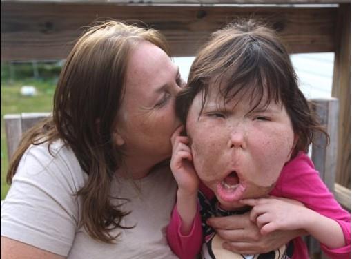 "Lekari još uvek pokušavaju da otkriju šta je sa Kejt. U šestom mesecu trudnoće rečeno mi je kakve će probleme imati moje dete, ali ni dan-danas ne znamo o čemu je reč i zbog čega Kejt ima takvo lice. Bila je na nekoliko operacija i skinuto joj je samo masno tkivo" kaže mama Endži.