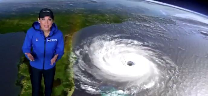 Međutim, voditeljka se na snimku bukvalno našla u srcu uragana. Na sreću, u animiranom uraganu a ne pravom.