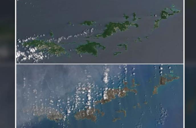 NASA je objavila fotografije koje najbolje prikazuju posledice uragana Irme, koji je opustošio Karipska ostrva i uništio toliko biljaka da su ostrva promenila boju.