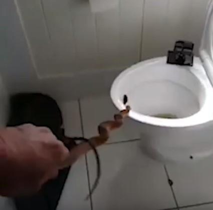 Hvatači zmija iz Gold Kousta iz Australije objavili su na Fejsbuku snimak hvatanja uporne braon mangrove zmije, koja se krila ispod ivice WC šolje.