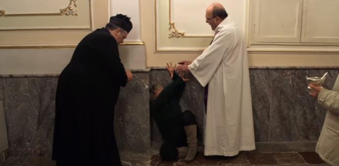 "Odbijam tvoj prokleti, lažljivi duh. Odlazi Satano!" U jednom trenutku mise, ženu pridržavaju na podu dok joj se baca brašno u lice, a druga žena pljuje, stenje i valja se po tepihu, dok muškarac u uglu reži jer mu na čelo stavljaju raspeće.