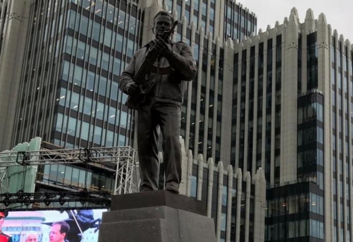 Spomenik, koji se nalazi u centru ruske prestonice, prikazuje Kalašnjikova kako drži pušku.