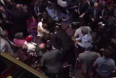 Pravi haos nastao je kada je obezbeđenje izbacilo demonstrante, ali nije bilo jasno da li oni pripadaju hotelu ili ličnoj Erdoganovoj pratnji.