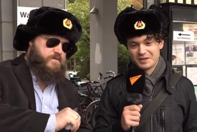 Novinari nemačke redakcije Sputnjika odlučili su da smicalicama utiču na izbore u Nemačkoj, tako što su na jedno od izbornih mesta došli sa votkom i šubarama sa kokardom.