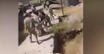 Snimak koji je objavljen na internetu prikazuje uniformisane muškarce koji po podu vuku nenaoružanog, okrvavljenog čoveka pa ga bacaju preko ivice litice.