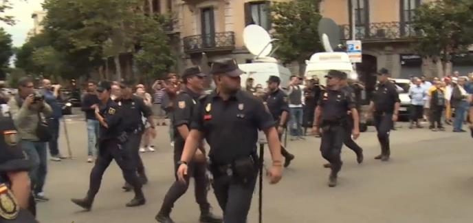 Policajce su ispratile desetine građana vičući "živela Španija", "živela policija" i uz navijački poklič, koji se koristi kada igra španska reprezentacija, “(idite) na njih”, koji je ovaj put usmeren na Katalonce, zagovornike nezavisnosti, a ne na sportske protivnike.