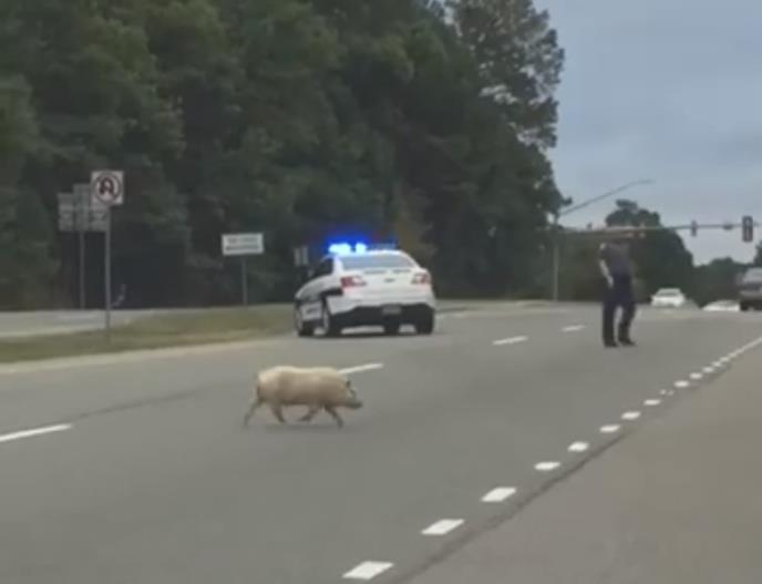 Policija je konačno uhvatila svinju u utorak ujutro pošto je na kratko zaustavila saobraćaj u prometnoj ulici.