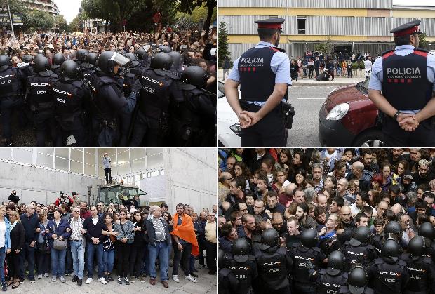 Video snimak objavljen na sajtu El Paisa pokazuje da specijalci sa šlemovima na glavi stoje naspram jedne grupe gnevnih birača nedaleko od glasačkog mesta u jednoj školi u Barseloni.