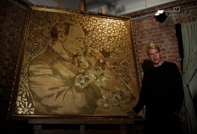 (FOTO) ZLATNI PUTIN: Umetnik čestitao ruskom predsedniku rođendan slikom visokom dva metra