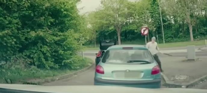 Muškarac sa bejzbol palicom je brže-bolje krenuo da se obračuna sa vozačem "pežoa 206" sa kojim se pre toga očigledno posvađao.