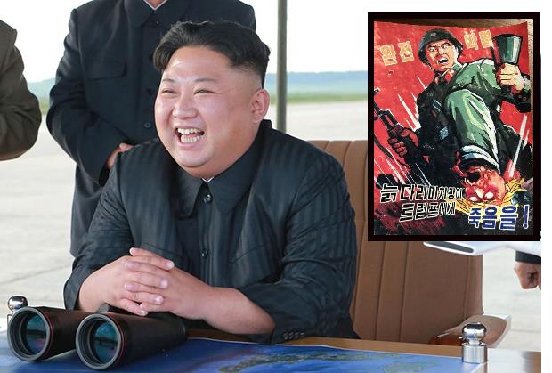 Ne prikazuje svaki poster prikazuje Trampovu smrt. Jedan pokazuje Trampa kao ogromnog psa koji drži raketu između zuba, govoreći sa podijuma UN da "će da potpuno uništi Severnu Koreju". Slušaoci govore: "On je potpuno poludeo" i "Ako ga pustimo, biće rata."