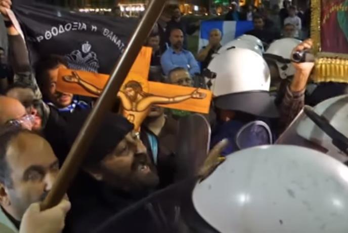 (VIDEO) HAOS U GRČKOJ: Monasi i sveštenici pokušali da prekinu predstavu, policija uzvratila palicama
