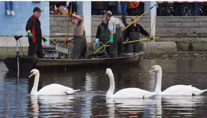 Neki sumnjaju da je reč o divovskom somu ili sličnoj ribljoj vrsti. Oko 500 ribara amatera i profesionalaca u subotu se dalo u veliku potragu. Spektakl su, po pisanju medija, sa zanimanjem pratili i sami labudovi.