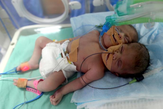 Palestinski lekar Alam Abu Hamda izjavio je da su u pojasu Gaze rođene spojene bliznakinje, što se retko događa i da su dobrog zdravlja, ali da će im biti potrebna medicinska nega u inostranstvu.