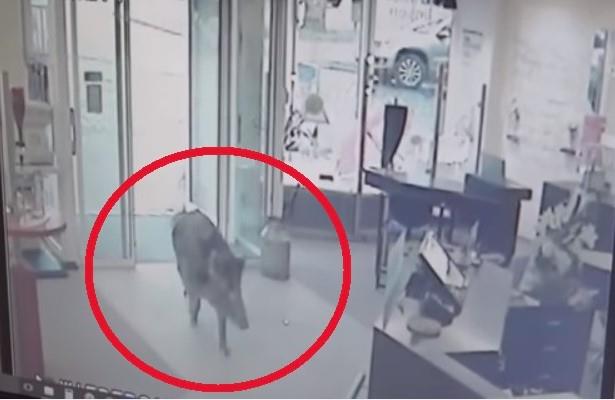 Četiri osobe su povređene u napadu koji je snimljen sigurnosnom kamerom. Snimak prikazuje vepra kako furiozno utrčava u optičarsku radnju i kako se prazne sobe dok zaposleni pokušavaju da mu se sklone s puta.