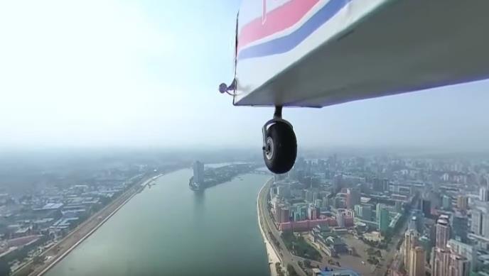 Poleteo je iz aerokluba Mirim koji je sagrađen za severnokorejskog vođu Kim Džong-una, koji je vešt pilot i često sam leti. Snimak pruža čudesan pogled na prestonicu koja je dom za dva miliona Severnokorejaca odanih zloglasnom režimu koji zemlju drži u izolaciji od ostatka sveta.