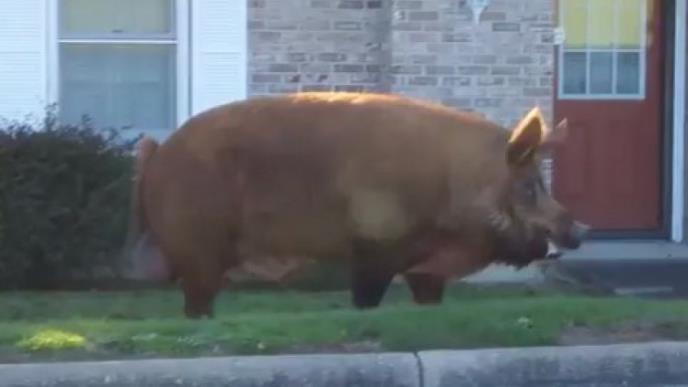 Alabama resident shocked to find humongous hog roaming her neighborhood: https://t.co/FWvK20XiOXpic.twitter.com/GUicRIThhT