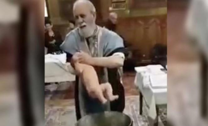 Na internetu se pojavio video na kom se vidi kako sveštenik bebi tokom krštenja stavlja ruku preko usta da ne bi više plakala.