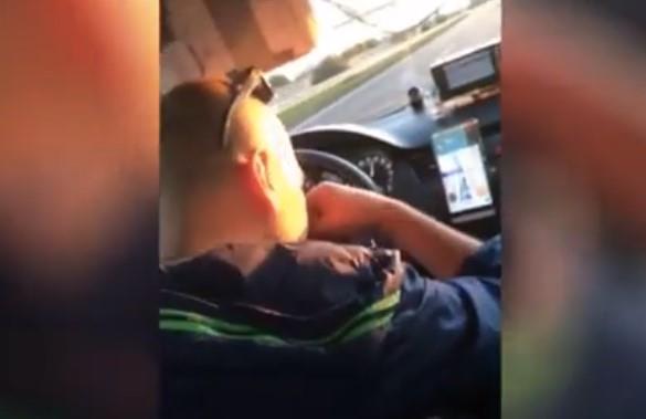 Ovo je šokantan snimak koji pokazuje taksistu da šmrče nešto što liči na kokain dok se brzo kreće duž auto-puta.