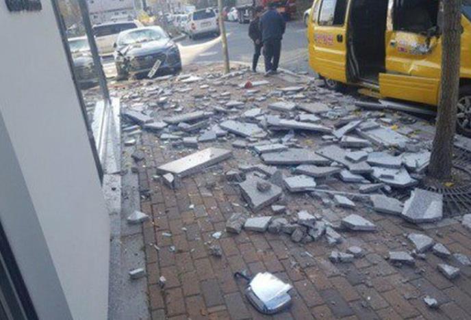 Južnokorejski mediji prikazali su snimke na kojima se vidi da su delovi srušeni zidovi pali na parkirane automobile, kao i slomljena prozorska okna na nekim zgradama.