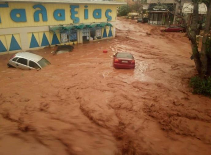 "Ceo grad Nea Peramosa je poplavljen", rekao je gradonačelnik Grigoris Stamulis, "Nismo do sada videli takve poplave".