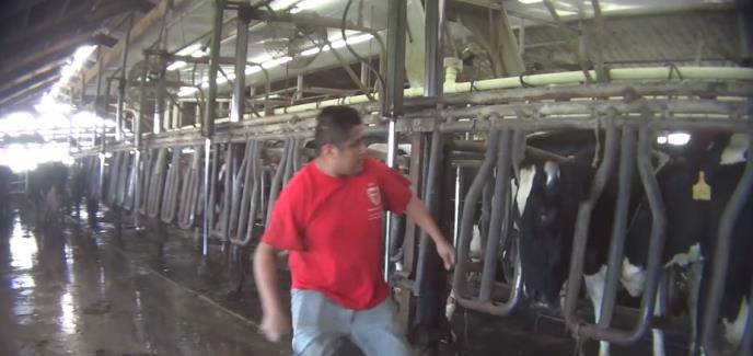 "Nadzornici i mlekari su tukli, ubadali i mučili krave muzare metalnim šipkama. Oštri metalni štapovi probadaju i prodiru u telo krava“, govori narator.