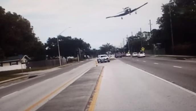 Kao što se vidi na snimku, mali jednomotorni avion leteo je vrlo nisko iznad puta i iznenada se nagao na levu stranu. Tada je i preleteo automobil zamenika šerifa okruga Pinelas.