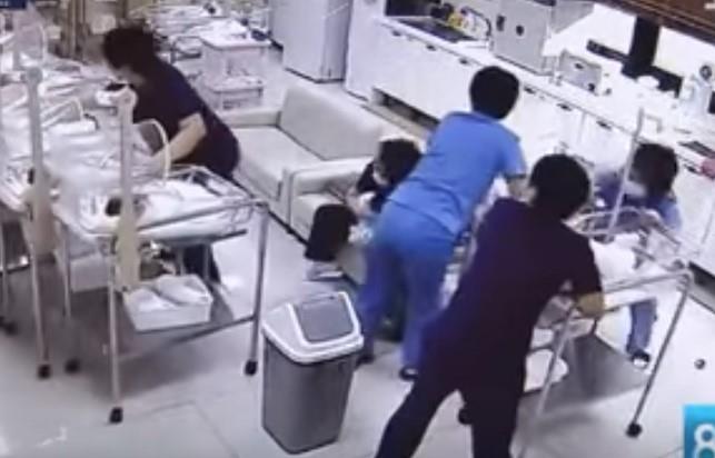 Na snimku se može videti da iako se čitava zgrada tresla, sestre su pridržavale pokretne krevetiće u kojima se nalaze bebe.