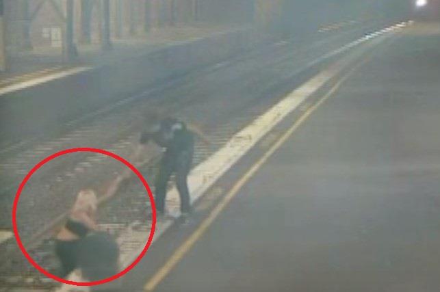 U susret su joj potrčala trojica policajaca koji su je povukli sa šina samo nekoliko sekundi pre nego što je voz stigao do nje. Iako je voz usporavao kako bi se zaustavio, da ju je udario, žena bi skoro sigurno poginula.