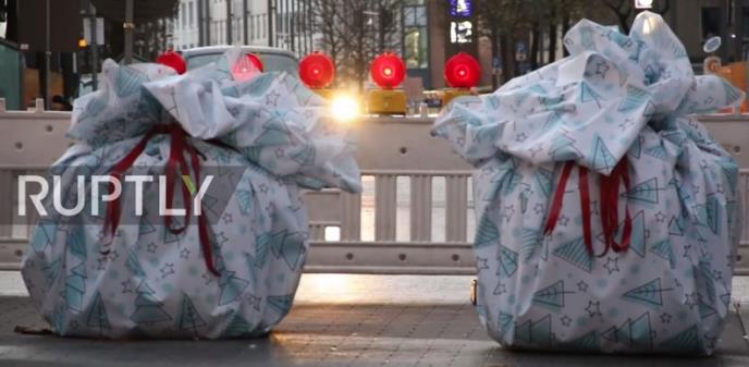 Niz prepreka teških 1,2 tone umotane su u ukrasni papir i postavljene su kao barijere za automobile protiv potencijalnih terorističkih napada.